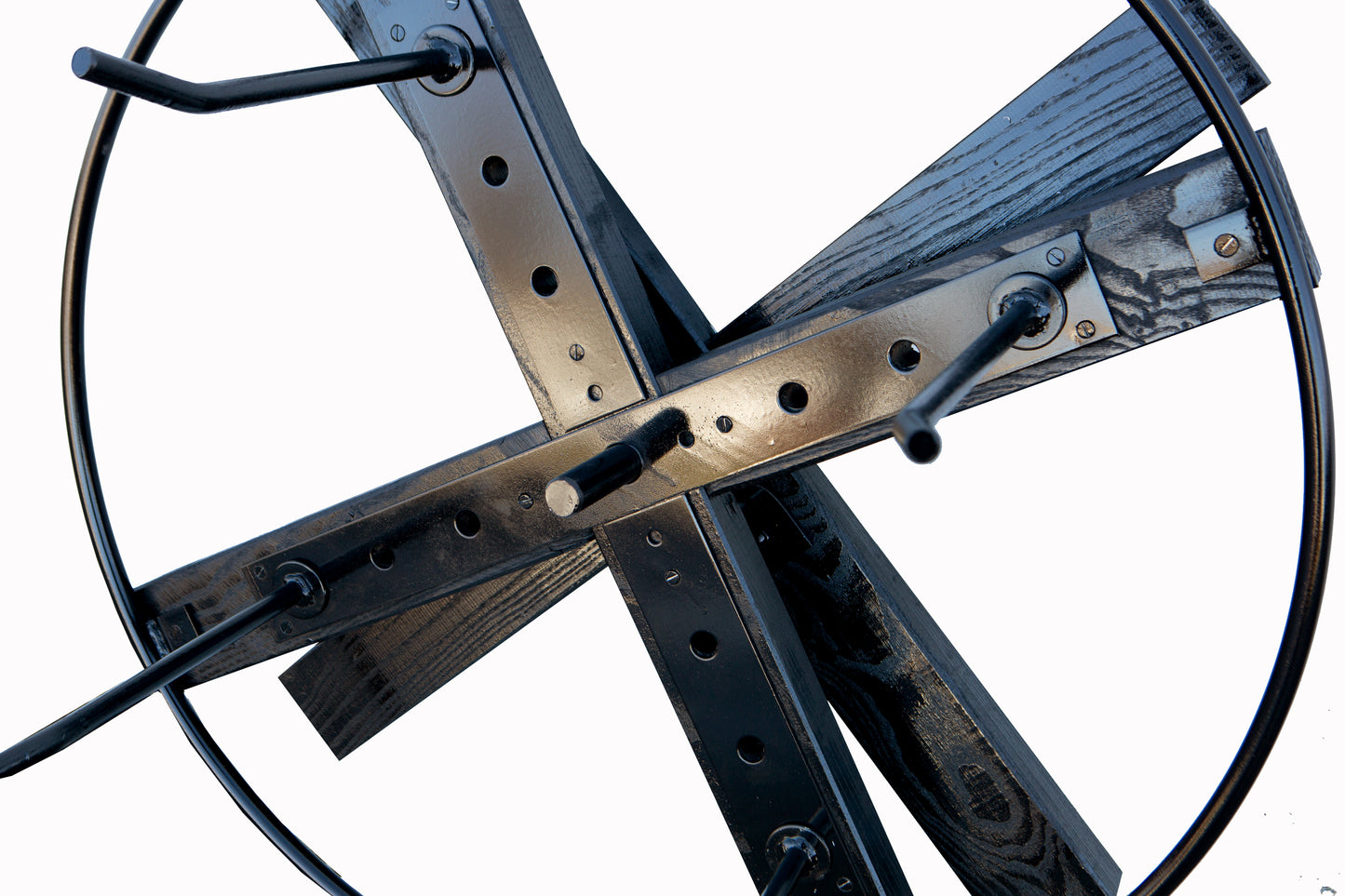 (902) Plain Pay-out Reel is made of reinforced hardwood. It is specifically suited for gang mounting on a truck bed or trailer when paying out several wires simultaneously. The reel guide pins handle coils up to 12” in thickness and adjust for 12”, 18” or 24” inside diameter coils. Maximum coil diameter is 33”